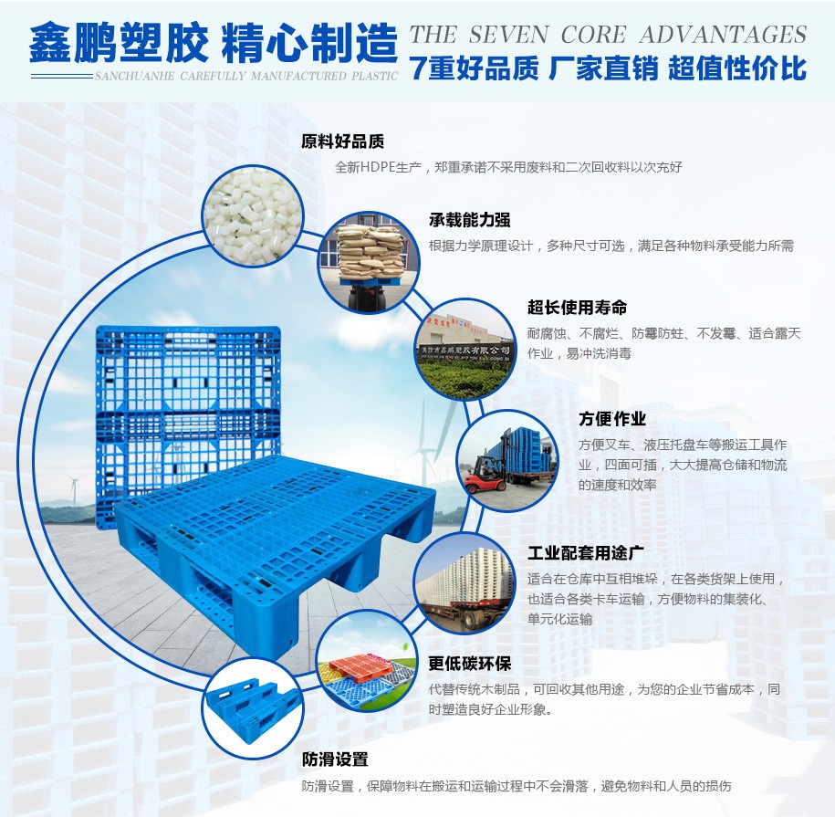 3、嚴(yán)禁將塑料托盤從高處拋落,避免因猛烈地撞擊而造成托盤破碎、裂紋。